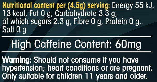 - FAST ACTING CAFFEINE JOLT – We use pure Guarana to immediately deliver 60mg of caffeine when consumed.