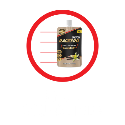 32Gi ®’s Race Pro 300 Gel is designed to provide a tasty high-calorie feed. It’s a superior gel, utilizing a quality carbohydrate blend, and protein.